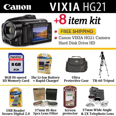 Reviews : Canon VIXIA HG21 Hard Disk Drive High Definition Camcorder With Ultimate Butterfly Photo Accessory Package Includes Lenses, filters, 3HR Battery & Charger, 8GB Memory, Tripod, Case + Much More